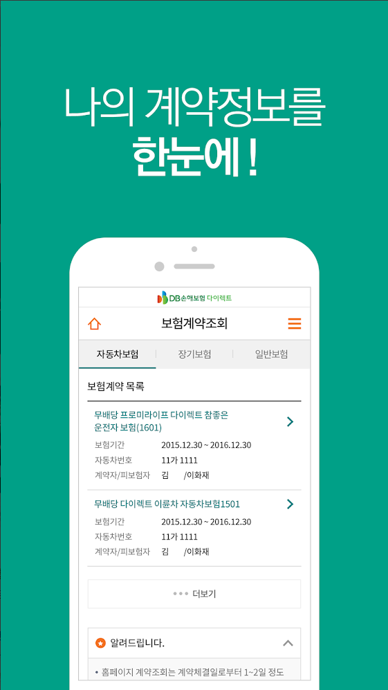 자동차 보험 DB손해보험 다이렉트 공식 앱입니다.