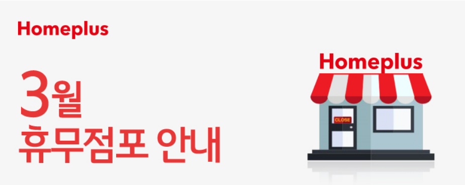 2021년 3월 홈플러스 휴무일 정리하였습니다.